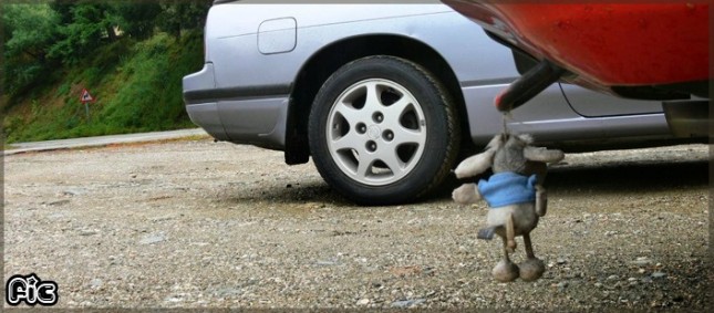 Nos explicaron que en una de las paradas se encontraron a un señor con un Porsche Carrera. Este les dijo: -No esta el tiempo como para tramear!. Lo que no sabe quizá este buen hombre es que cuanto más deslizante está el asfalto, mejor nos lo pasamos algunos!