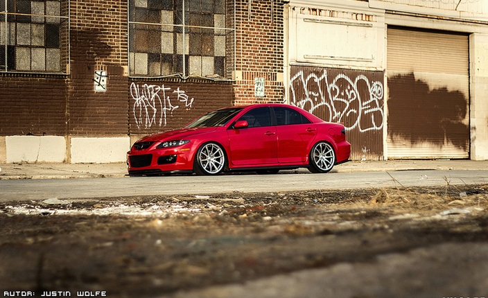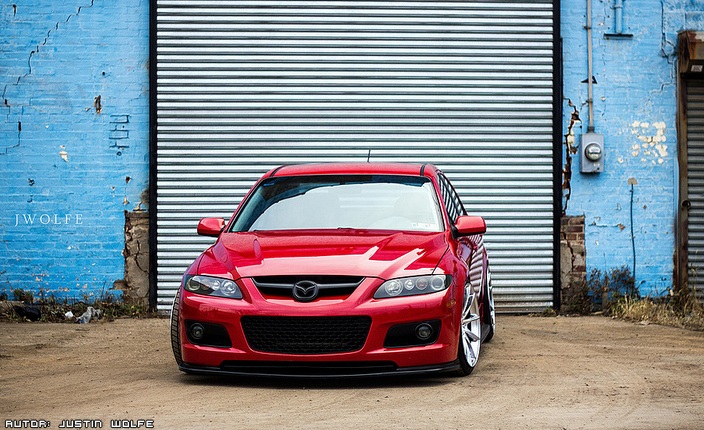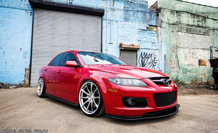 Como ya sabéis, el color rojo es sinónimo de agresividad. Es precisamente lo que nos emite este mazdaspeed 6 con sus llantas en 19 totalmente ajustadas al chasis gracias a la suspensión y los lips en negro añadidos a la carrocería para darnos tal efecto. Perfecto.
