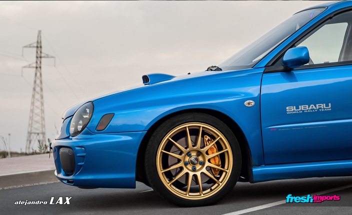 Este Subaru Impreza STI está aposentado sobre unas OZ Ultraleggera en doradas que le dan ese toque característico de los Subaru.