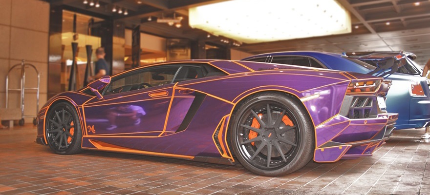Habrá a mucha gente que no le guste nada el diseño o que simplemente diga… “oh! como le haces esto a un Lamborghini!”, pero habrá a muchos otros que si les gustará. Con los ribetes naranjas destacando todos los polígonos del coche (que no son pocos), y con el color purpura cromado me recuerdan mucho a la película de tron. A mi personalmente me encanta, poca gente se atreve a hacer estas cosas!