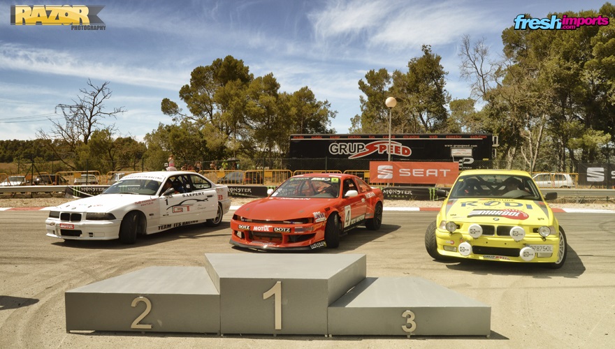 El primer lugar del podio, después de dos “One More Time”, fue para Arnau Gómez con su increíble Nissan S14 con RB25DET, el motor del Nissan skyline GTS-T, una batalla increíble con el segundo clasificado, el piloto francés Sebastien Lepert, con su BMW M3 E36, el cual sustituye a su coche propio en competición, un Mazda RX7 FD3S. El tercer lugar fue para Llorenç Padró, un experimentado piloto de rallys y subidas que dio un espectáculo enorme con su M3 E36 con swap de motor de M5 V8. Éste último disputó una batalla por el tercer y cuarto puesto con Santi López, el piloto que lleva un Nissan S14 con motor RB26DETT, una batalla digna de ver por el “One More Time” y la experiencia notable de los pilotos.