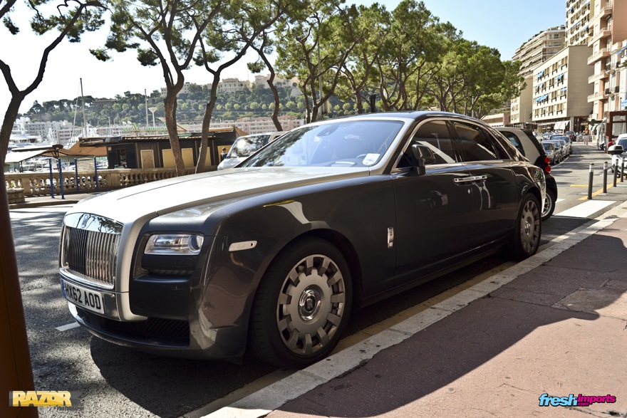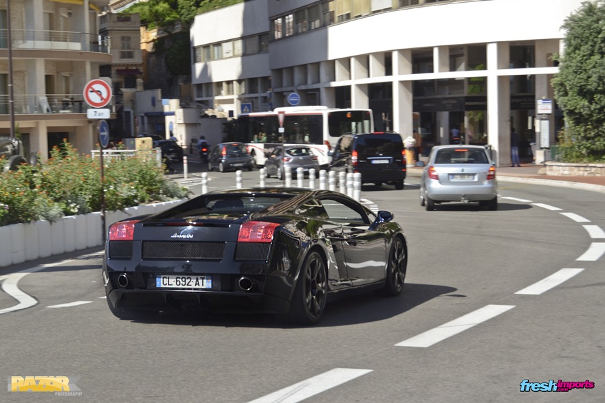 En la zona portuaria pudimos ver también el Nuevo Rolls Royce Ghost, y subiendo por la recta Beau Rivage nos encontramos con un Lamborghini Gallardo en un color muy discreto el cual la marca italiana lo denomina Nero.