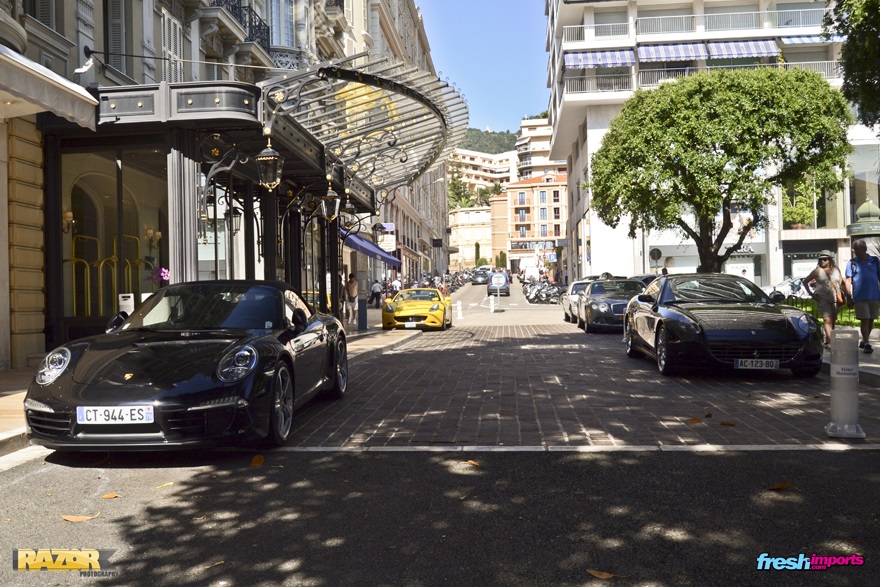 En el ascenso hasta la parte alta también se vieron máquinas increibles junto al Casino, como El recién estrenado ferrari f12 a parte de los incontables Rolls Royce y Bentleys, o incluso un llamativo Ferrari F12 en una curiosa combinación azzuro monazo con un interior Beige.