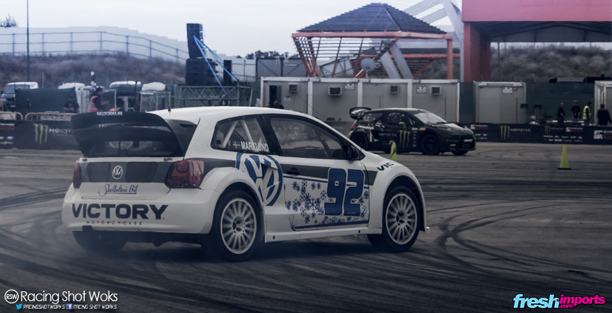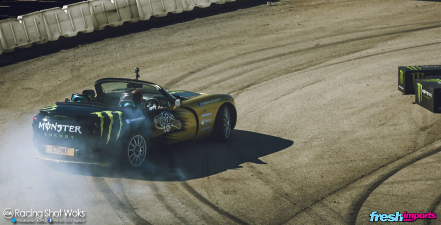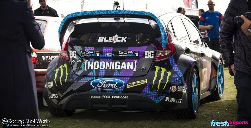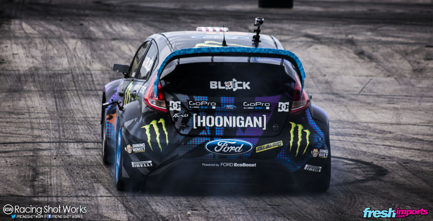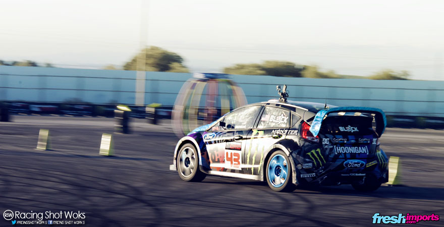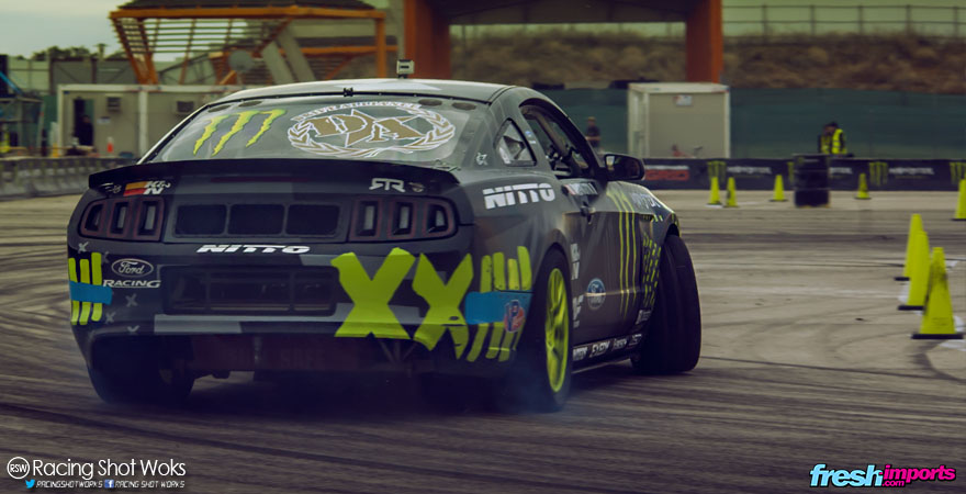 Ken Block, para lo bueno y para lo malo, fue el centro del espectáculo ofreciendo al público grandes trompos, pero un problema en la caja secuencial introdujo la marcha errónea en una reducción y Ken hizo un trompo terminando contra el muro de hormigón y dañando seriamente la parte trasera de su Fiesta! Video: