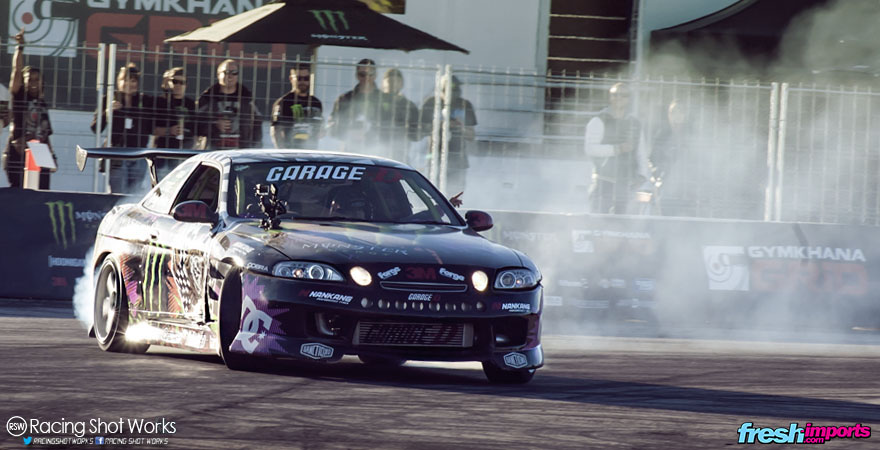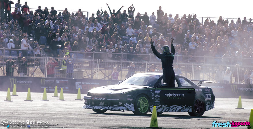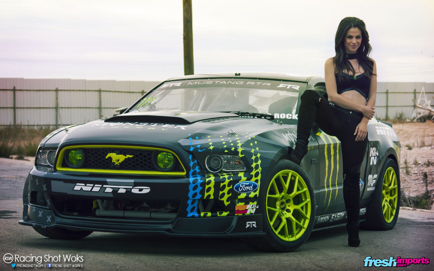 Vaughn Gittin Jr. arrancó su Mustang y lo postró frente a todos. Mientras los fotógrafos trataban se sacar su mejor fotografía las hermosas chicas de Monster se exhibían frente a él.