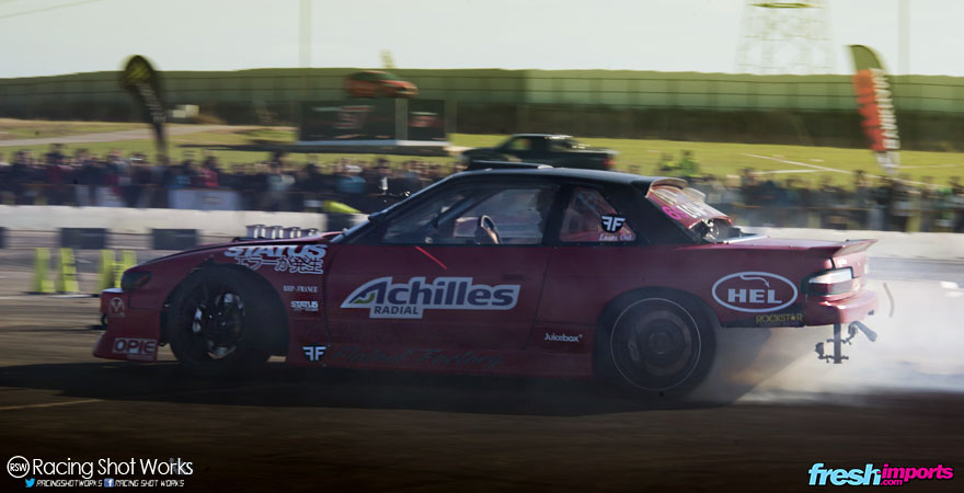 En RWD se impuso Luke Fink, con su Silvia S13 Low Brain V8, por delante de Nikolett y su BMW E30 con motor M3 E46 de 500 cv. El español David Infantes, que sufrió la baja de su fiel 240 SX S13, y que con problemas con el cambio, el diferencial y los pedales en el E36 prestado sólo pudo ser cuarto. Luke Woodham quedó en el tercer puesto.
