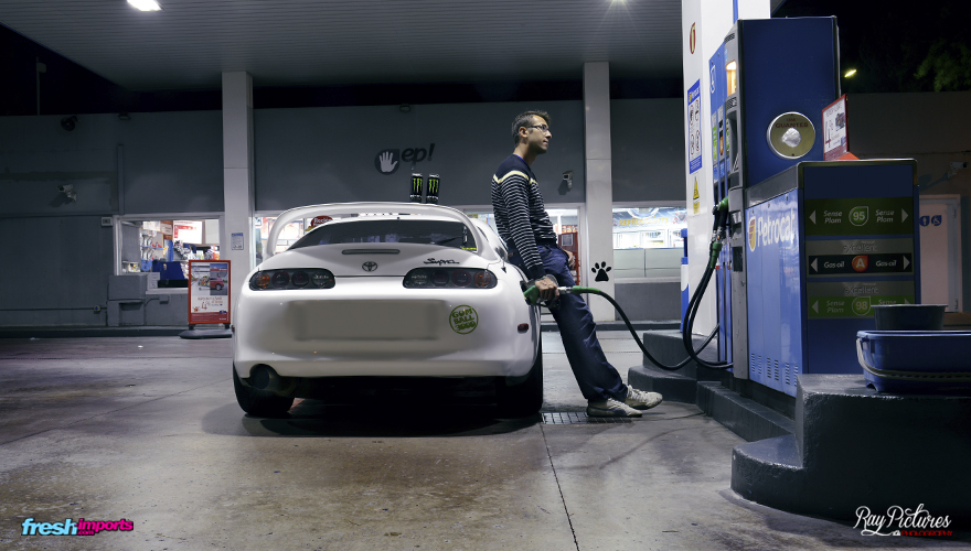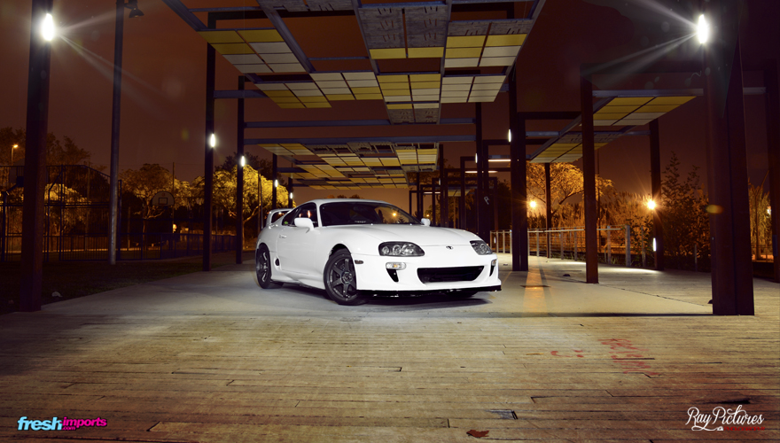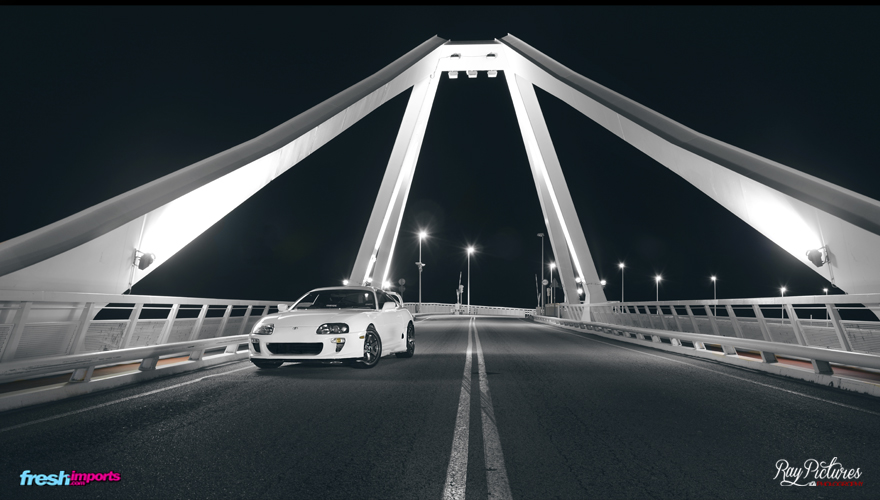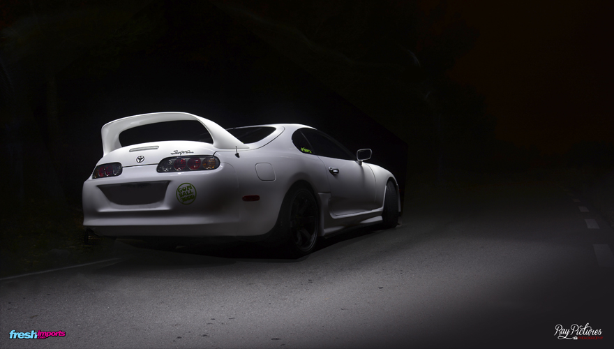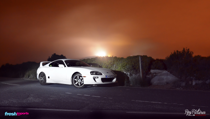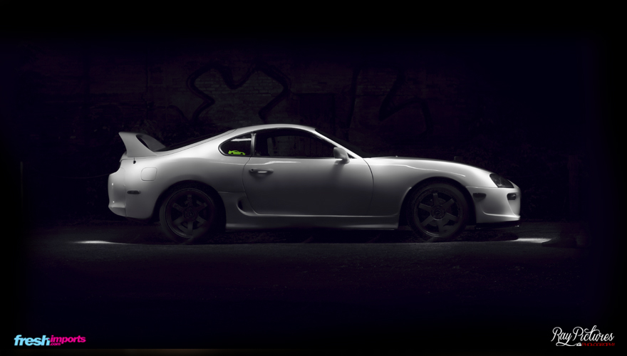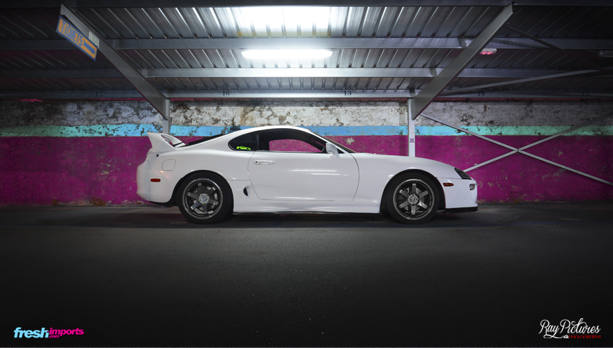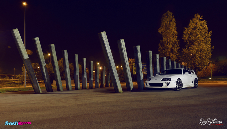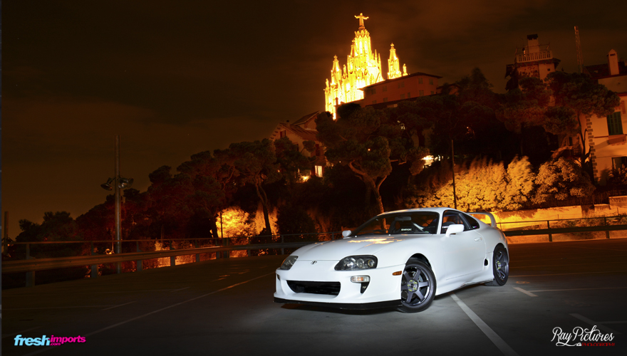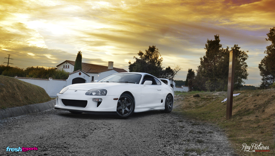 En cuanto al vehículo fotografiado que deciros…. Muchísimos de vosotros ya lo conocéis. Se trata de un Toyota Supra Japones importado del 97 , NA 5 speed manual. Lleva el silencioso trasero aftermarket, admision HKS y suspensiones BC racing BR.