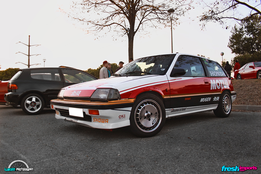 Para variar, pudimos ver un enorme numero de Hondas, civics EG, EK, EJ, EF, EP… y todos de muy variados estilos, aunque este civic EF nos gustó mucho por esa decoración de motul, típica del civic empleado por honda para las carreras de resistencia.