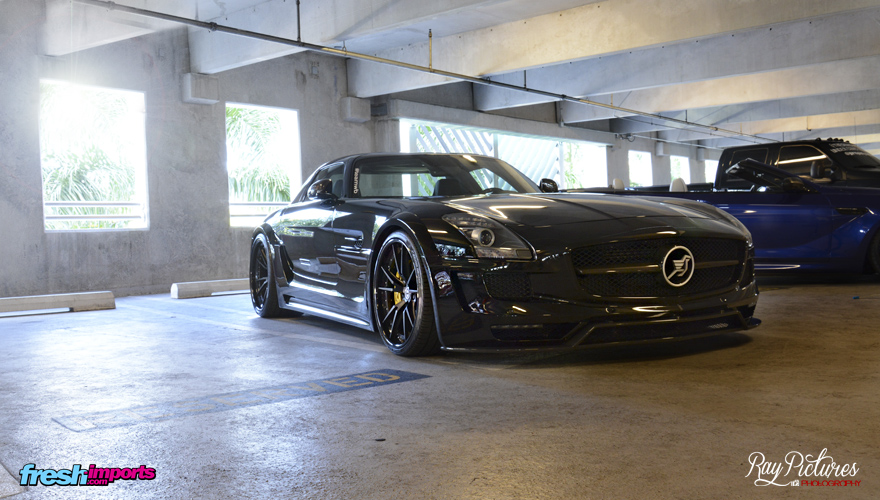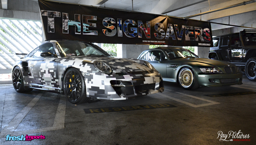 Esta vez se realizó en el parking del estadio de los Marlins, equipo de Baseball residente en Miami. Para que os hagáis una idea, un parking de dimensiones inhumanas. Cinco plantas con desniveles unidos por extensas rampas dignas de albergar cientos de vehículos abarcando toda la gama posible, pudiendo asi ver desde un Rubicon hasta un sls FAB Design.