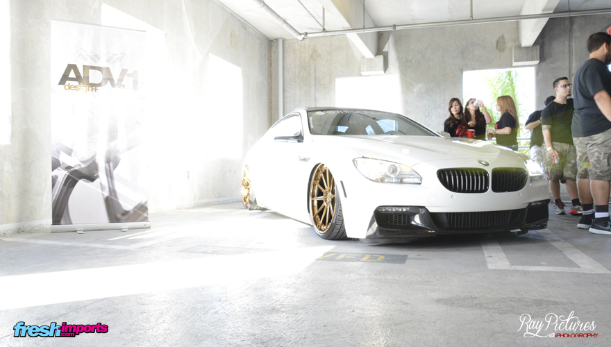 Tal y como he comentado, ADV1 estuvo presente con su stand en que tenían un serie 6 blanco con llantas doradas que junto a la entrada de luz creaban una postal parecida a la personalidad de la marca.