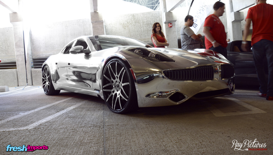 Impacta ver un Fisker Karma con llantas cambiadas. Este vehículo eléctrico se fabricó en Finlandia pero se diseño en California.