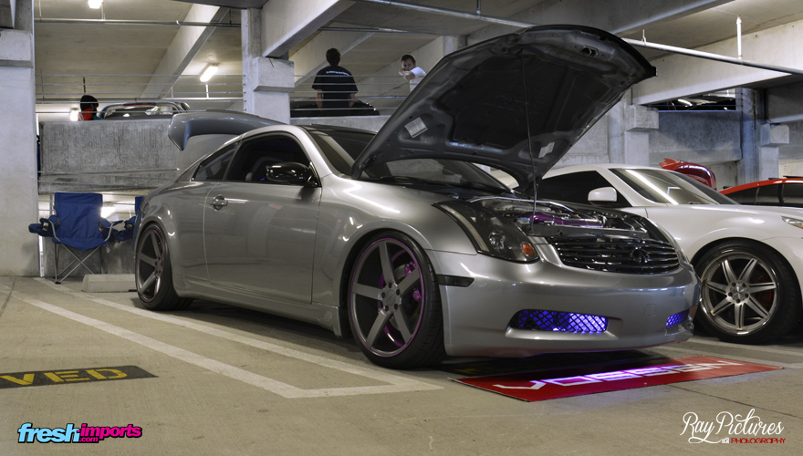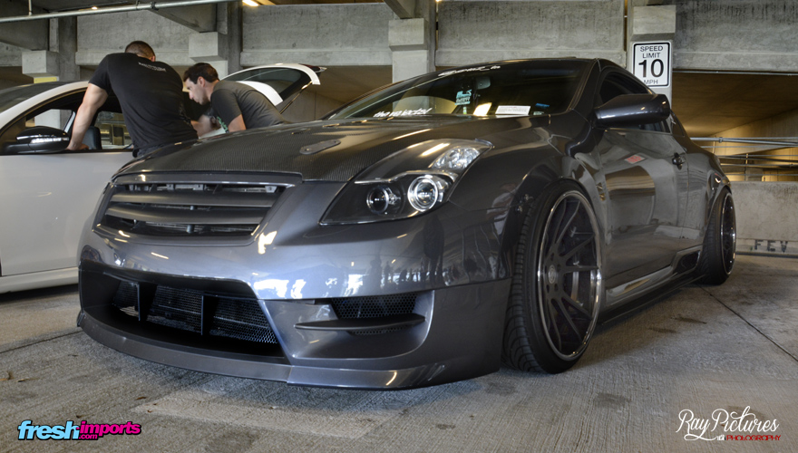 Como en este Infiniti G35 que tanto el maletero como el capo eran de fibra de carbono.