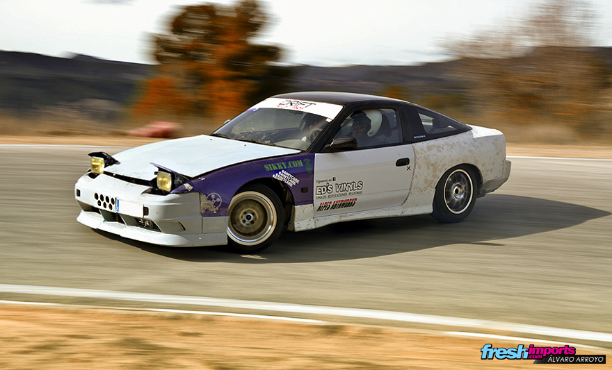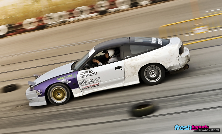 Karly rompió la suspensión delantera de su S13 justo a un día de las tandas, tuvo que montar la suspensión de serie pero aún así rodaba de una manera espectacular!!