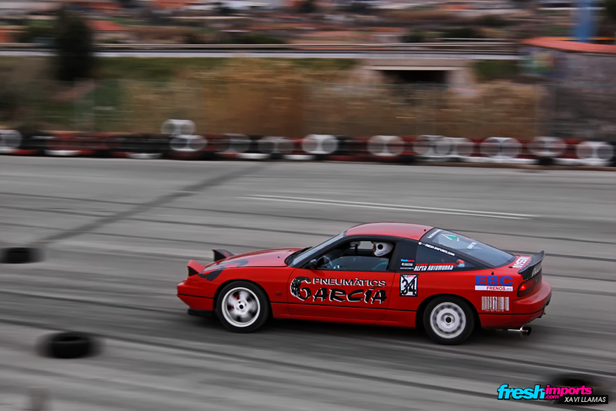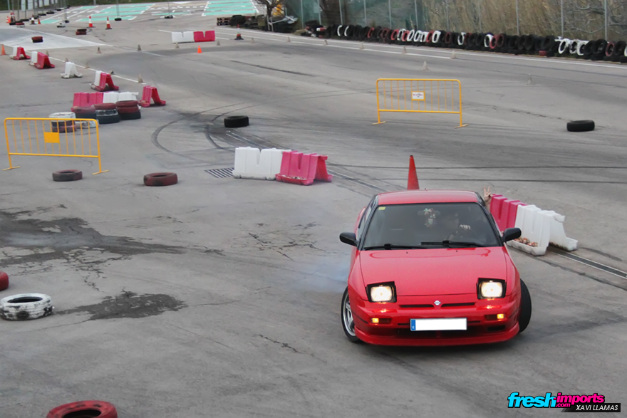 Volviendo a la gymkhana, aquí vemos a Carlos haciendo un Run the wall con su S13.