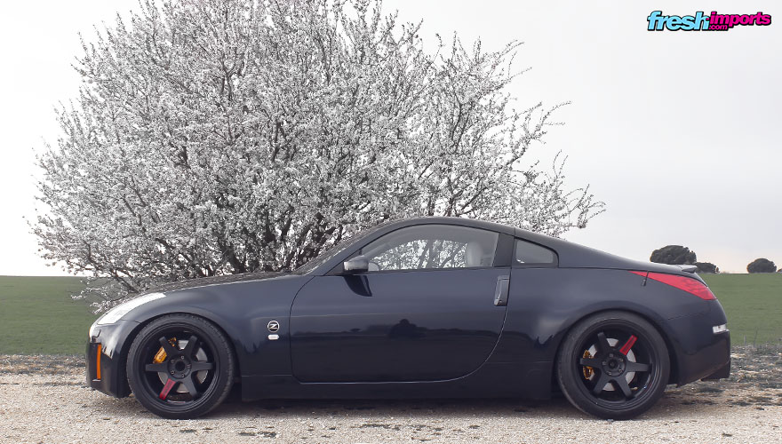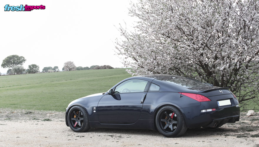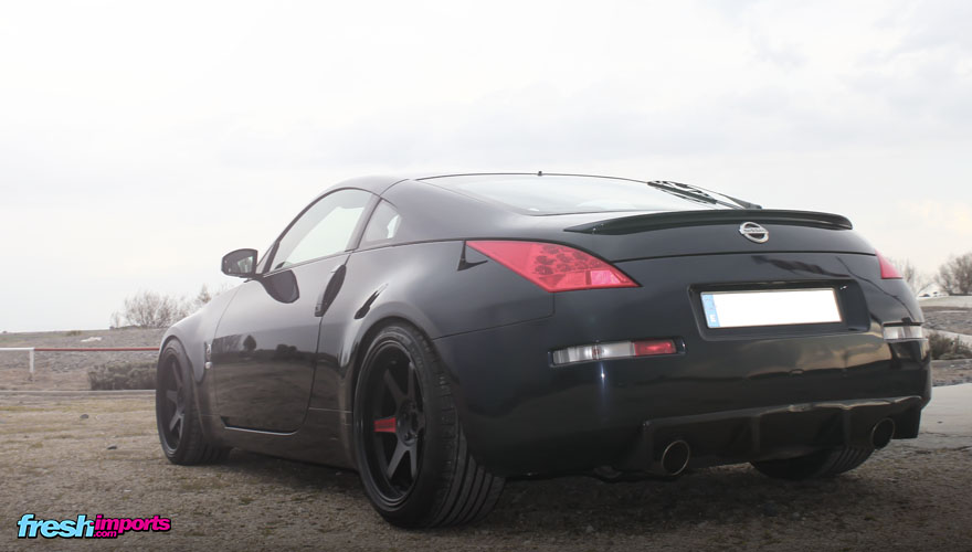 Conocí al dueño por haber tenido el placer de tratar con una de las piezas más bonitas que rompen la redondez de la trasera del 350z. Hablo del difusor EVO R en carbono. Yo mismo adquirí está pieza en EEUU porque siempre me han gustado los coches con una linea más agresiva, imagino que a él también!