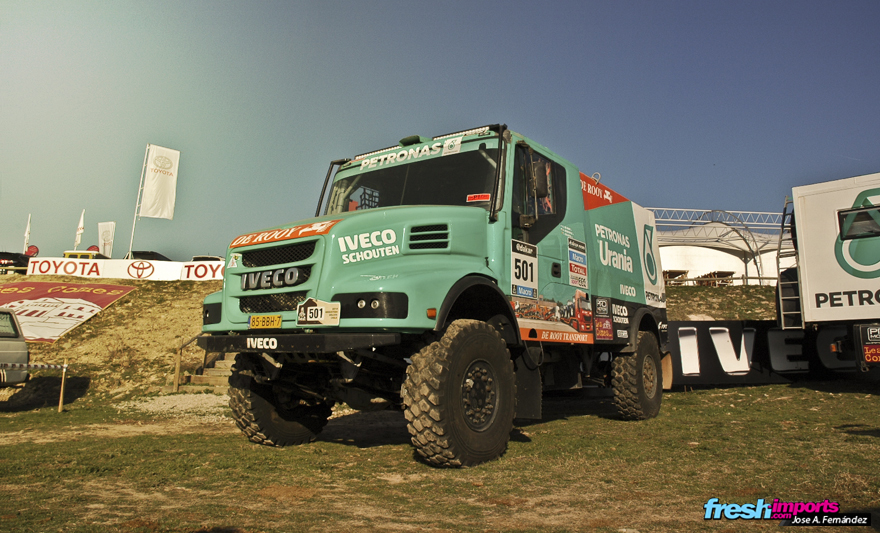 “La bestia parda” que aparece en esta foto es el Iveco de Gerard De Rooy, que comentábamos en la página anterior. El Iveco Powerstar Monta un 6 Cilindros en línea con 24 válvulas y una cilindrada de 12,9 Litros. Es capaz de rendir 840 cv a 2.200 RPM y un par máximo de 3600 Nm, cifras de miedo.
