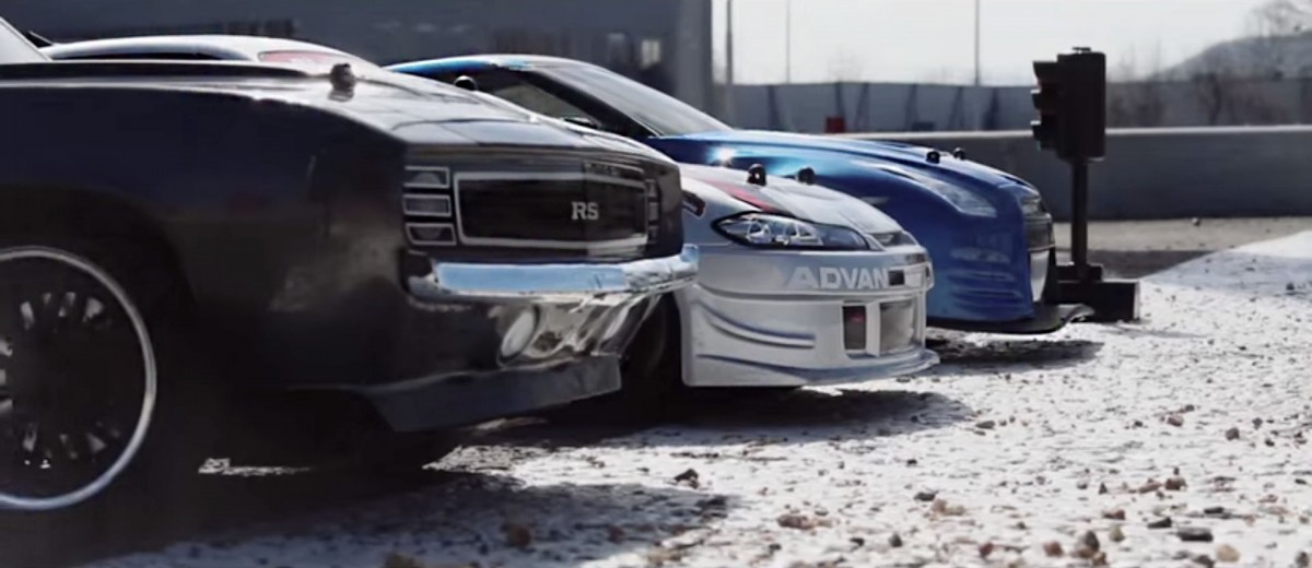En la parodia (ambientada en FF7) intervienen coches que ya se dejaron ver en FF6 como el GTR Bensopra, del cual hablamos hace escasos días, un Camaro RS, un Nissan Silvia S15 mas propio de la película Fast & Furious Tokio Drift y un Camaro ZL1. Disfrutar de Fast and Furious RC.