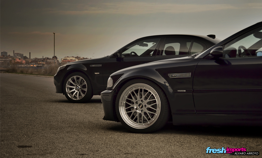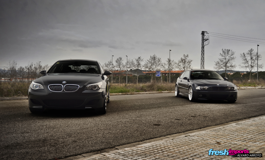 Aquel domingo después de pasar un fin de semana ajetreado, por la tarde se presentaba la oportunidad de fotografiar estas dos bestias de BMW. El M3 E46, la máquina que define el Peso/potencia en BMW, con un 6 Cilindros en línea capaz de rendir 343 cv con un peso de algo más de 1500 kg, y por otro lado el BMW M5 e60, un tanque que con sus casi 2 Toneladas es capaz de hacer un 0-100 en 4,2 segundos ayudado por su V10 de 5.000 cm3 y 507 cv.