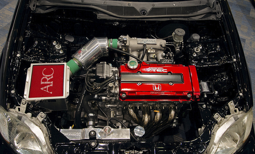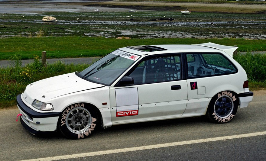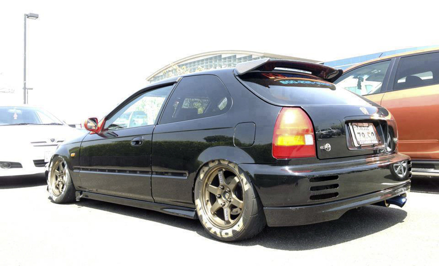 En esta foto podemos ver un Civic de 4a Generación con los detalles que más denotan el estilo kanjo, un coche de carreras, para calle. Vaciado, unas piezas con rendimientos por encima de las marcas más vendidas usualmente, y con un corazón lo más potente posible.