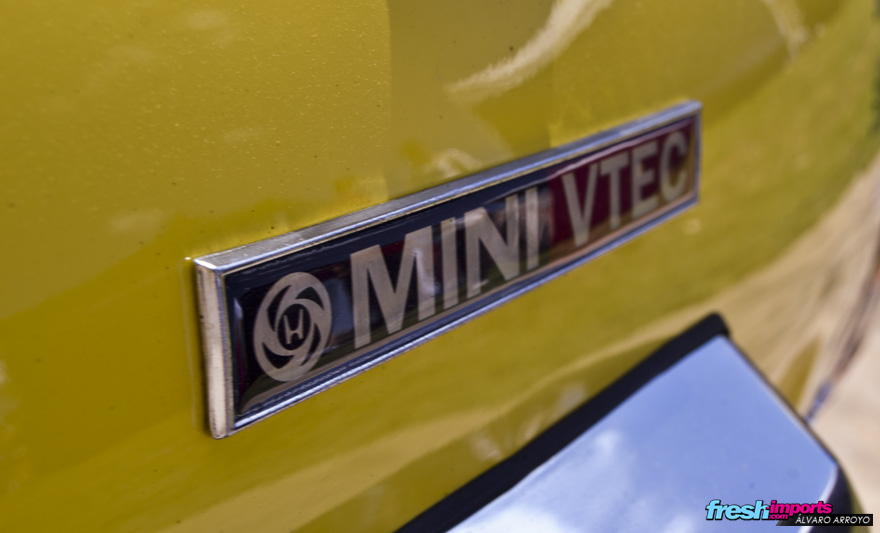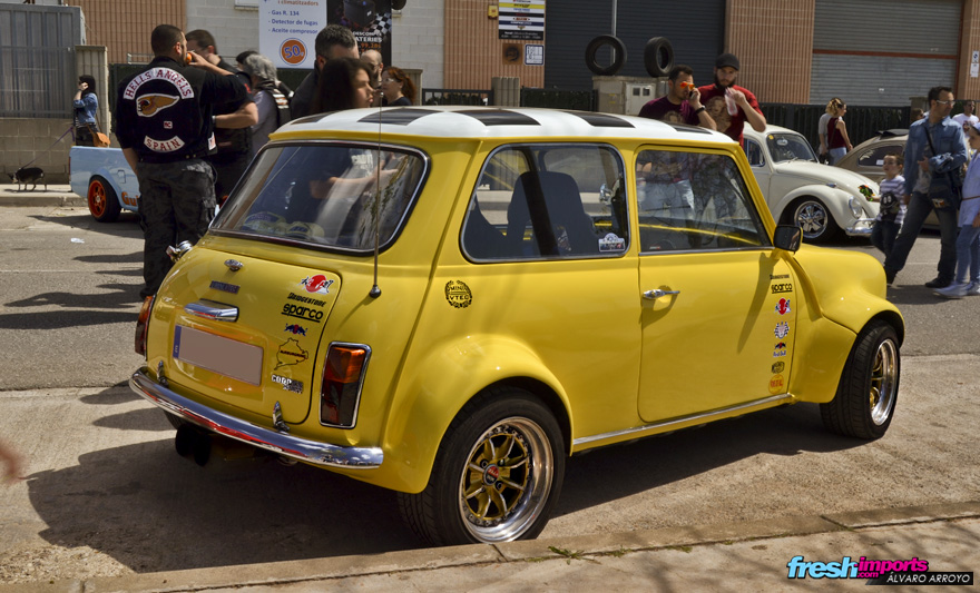 Efectivamente, un Mini 1275 GT con un swap bastante curioso, un B16 de Honda, toda una referencia del peso/potencia.