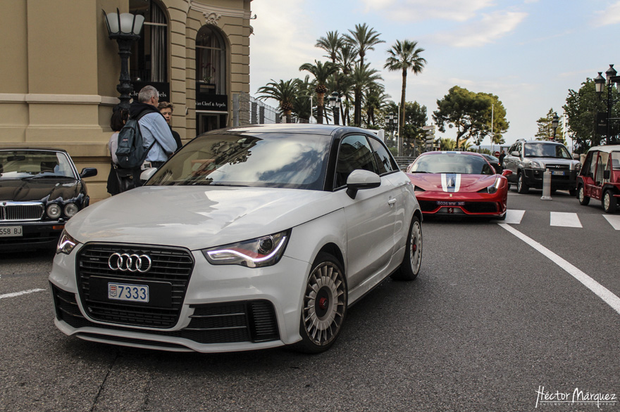 Ya en el casino podíamos ver el nivelazo que las calles del principado desprende automovilísticamente hablando. El pequeño Audi A1 Sport Quattro junto el 458 más radical, el Speciale