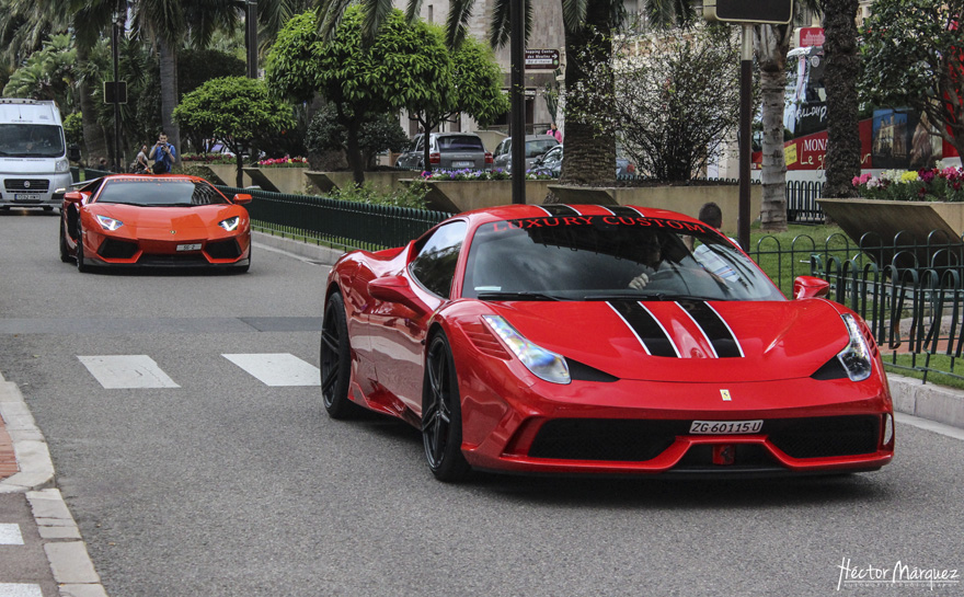 Y hablando de Speciale, aquí vemos el 458 junto a un precioso Lamborghini Aventador, que pasada porque además ambos están preparados por DMC.