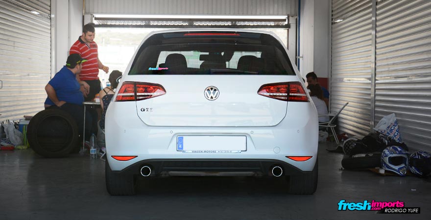 Como ya sabéis, íbamos bien cargados de pegatinas, las cuales regalábamos a todos aquellos amantes del motor como nosotros, aquí vemos un Golf GTI del cual estamos orgulloso que lleve nuestra marca.