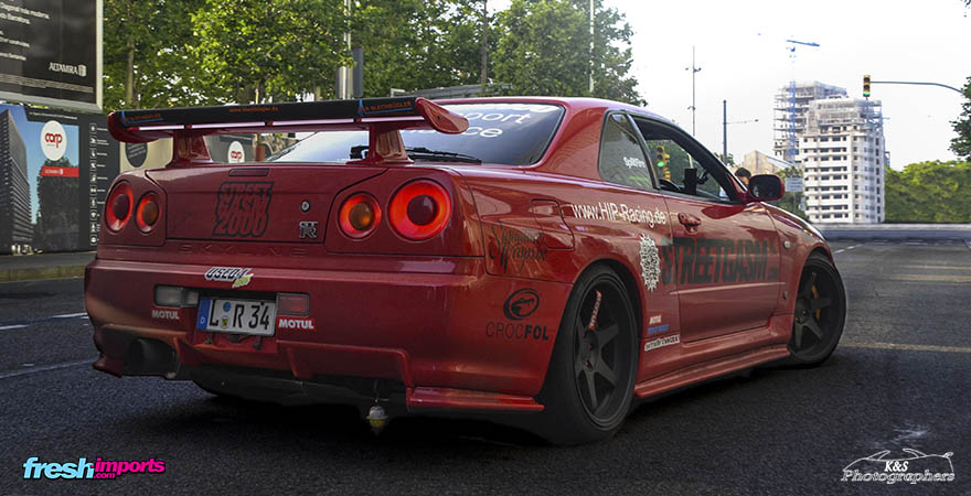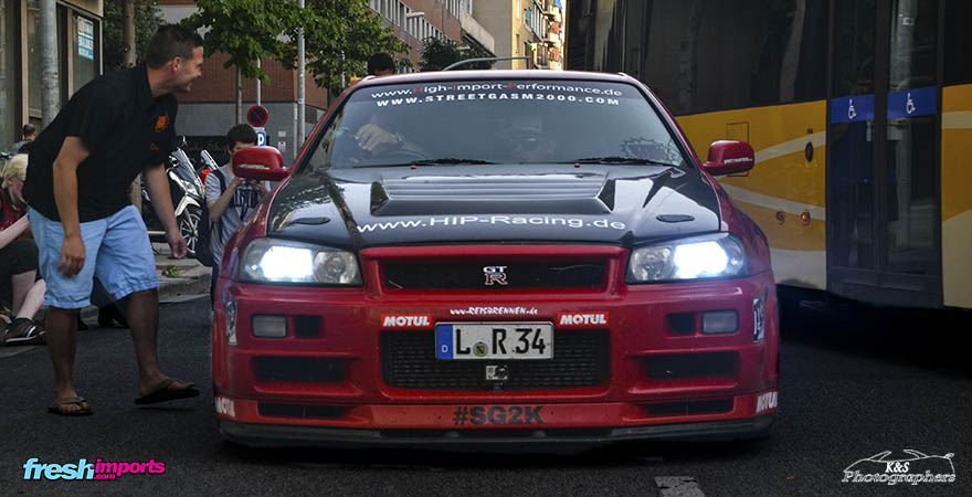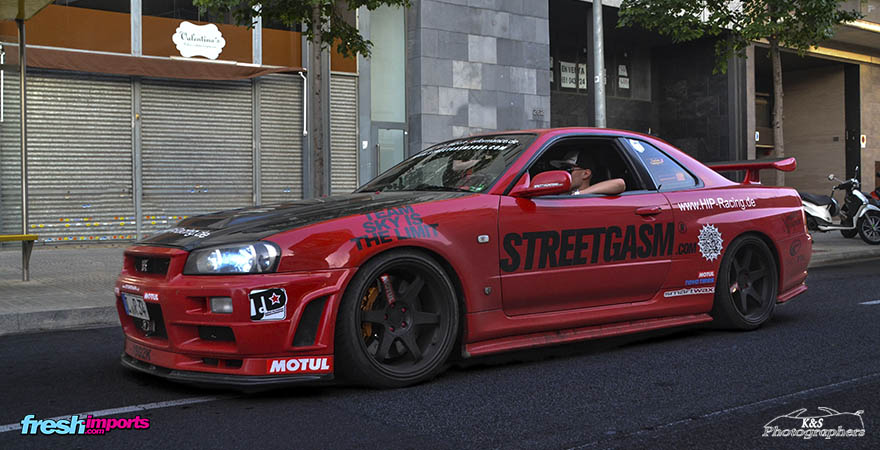 El mítico GTR R34 es uno de los coches que más impactan en Europa por la rareza que supone encontrarse con uno de cara al ser un coche más propio de Japón. Es realmente excitante!