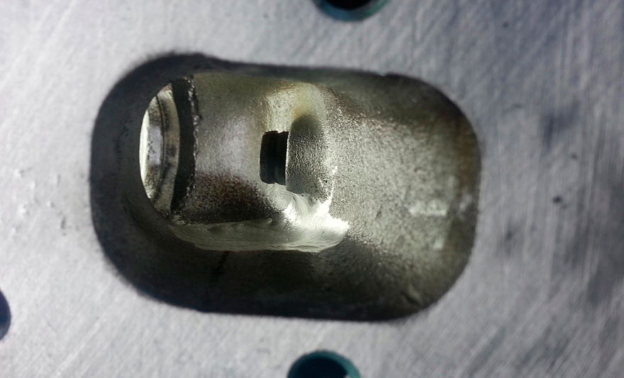 Trabajar los conductos de culata es otra parte muy importante, ya que así aumentamos el llenado del cilindro, si a la vez de este trabajo de refinamiento añadimos una curva más pronunciada en el conducto de admisión de la culata mejoraremos muchísimo más.