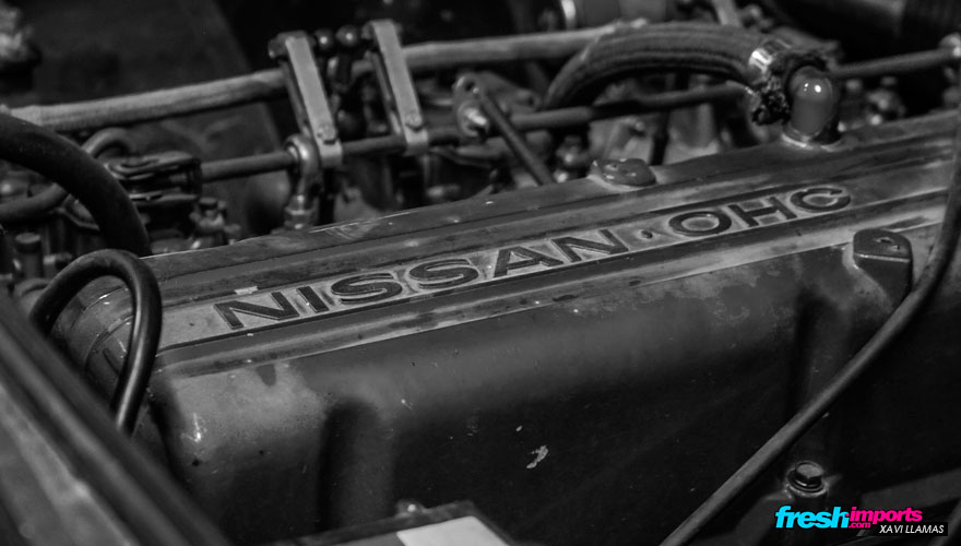 Este Datsun 240z llevaba parado desde hace medio lustro y fue encontrado sobre caballetes, motivo por el cual la suspensión no estaba resentida tras el paso de los años. En el interior alberga un motor de 6 cilindros en linea con distribución OHV de 2.4L con una potencia de 150cv a 5300rpm.