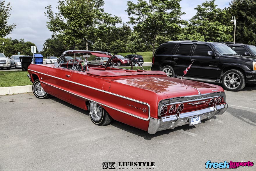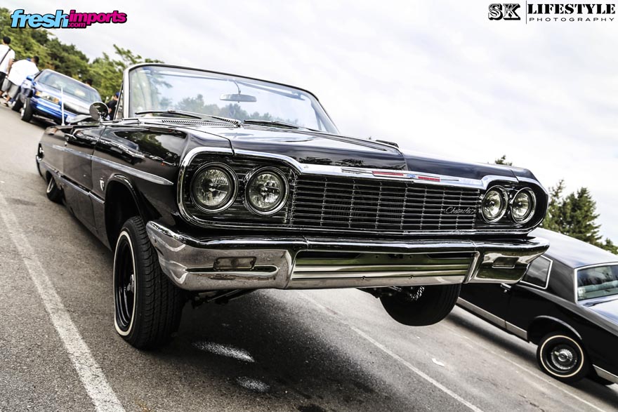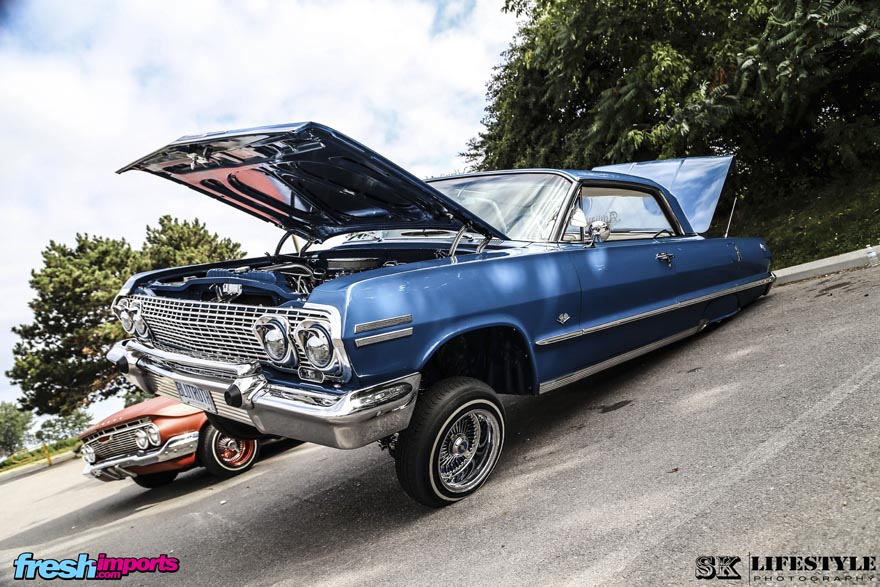 Otro Impala que no deja indiferente a nadie al verlo apoyado sobre tres de sus cuatro ruedas. Este en concreto es un modelo 1964.