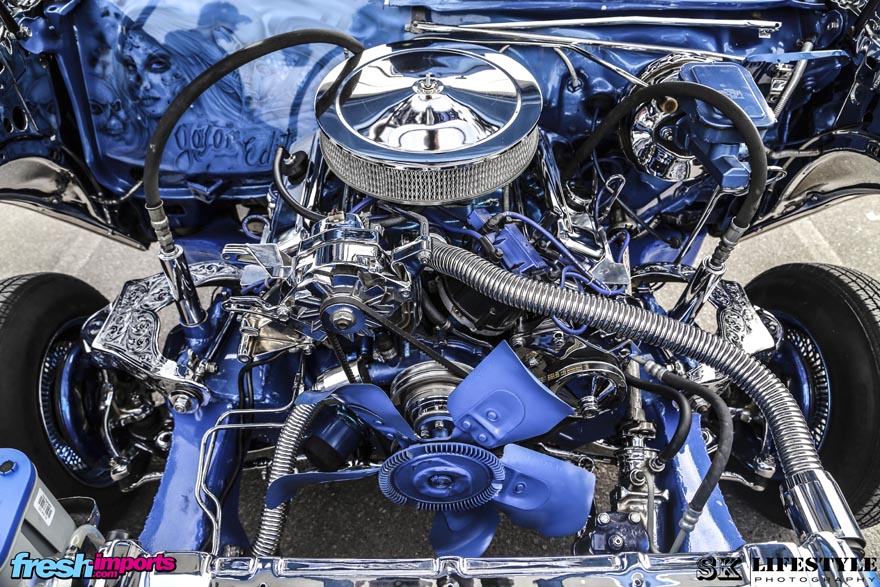 Y no solo en la parte que es más visible del vehículo, los motores cromados y limpiados a la perfección hacen que se vean estos lowriders de una manera increíble.