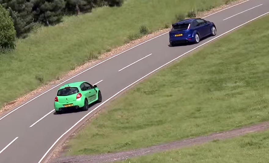 Otra de la rivalidad entre coches más racing podría ser esta. Aunque en rallys compiten en categorías diferentes, las versiones de calle son muy similares. El Focus RS MKII, desarrolla 305cv gracias a su 5 cilindros en linea con turbo, el Clio Sport RS207 desarrolla 207cv, aunque con unos cuantos kg menos. No os contaremos nada en este apartado, verlo vosotros mismos como el RS no es capaz de despegarse de detrás al Clio RS:
