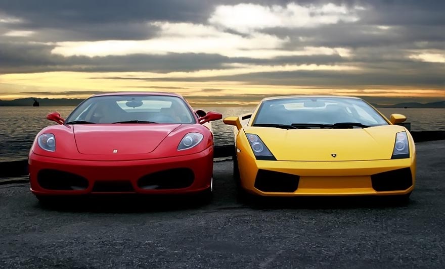 No podía faltar la guerrilla italiana. Los dos superdeportivos italianos rivalizaban por ser el mejor deportivo de motor central. Lamborghini, después de su fusión con el grupo VAG, optó por montar un V10 de 5L y 500 cv, mientras que ferrari incorporó a su coche, un V8 de 4,3L que desarrollaba 490cv. En estos margenes de potencia tan pequeños, a penas se nota la diferencia, así que lo mejor es tener un buen chasis. Eso pensó Lamborghini quien a parte de un incremento de potencia en el año 2007 hicieron el “Superleggera”, que incrementaba 30cv de potencia y un nuevo acabado exterior.