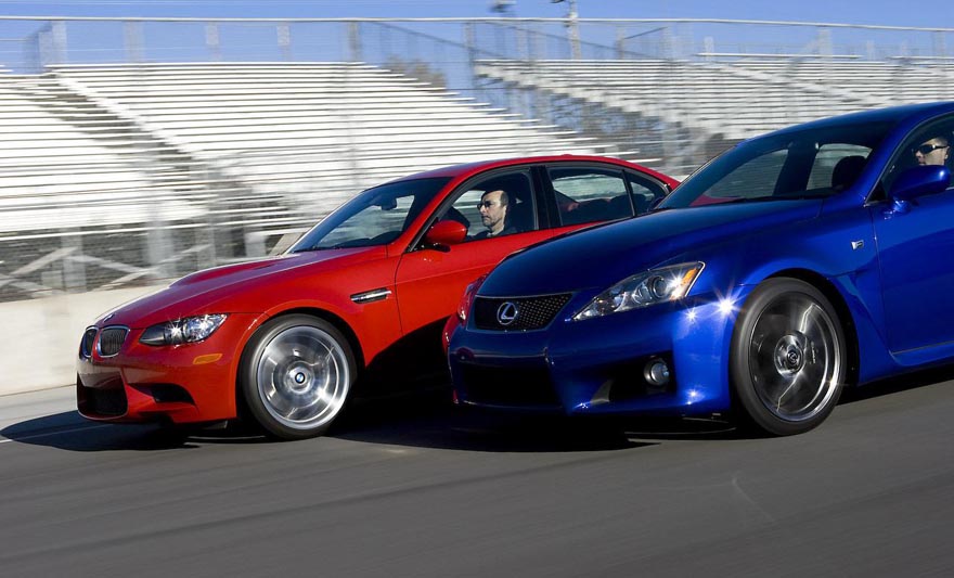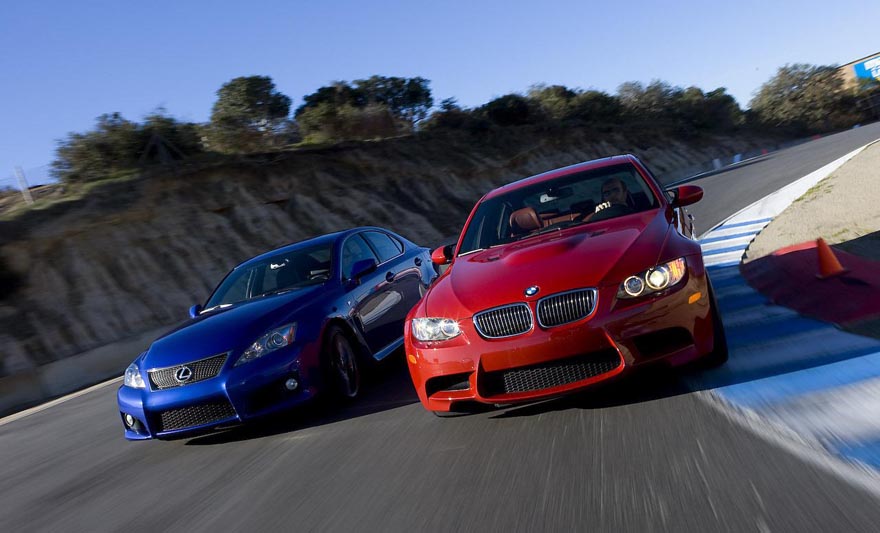 El afán por hacer berlinas rápidas también afectó a Lexus. BMW sacó un M3 con carrocería E90, es decir 4 puertas, con el V8 de 4L y 420cv. Este motor de hecho fue nombrado mejor motor del año en su categoría desde 2008 hasta 2012. Lexus quiso hacer algo similar e introdujo a su gama el IS-F.