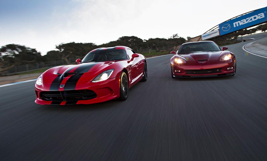 Esta rivalidad es de puro musculo, y hablamos de americanos. El Corvette está en el mercado desde principio de los 50. El Viper llegó a finales de los 90 con la versión RT/10 descapotable, para más tarde, con el GTS coupé, un vehículo que incorporaba un V10 de 8,0L y 450cv, poder dar el salto a un chasis mejor.