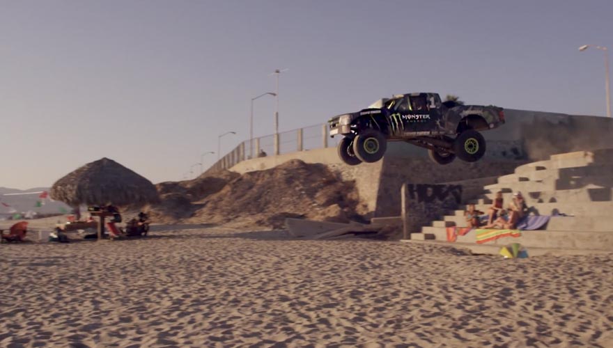 Suponemos que ya conocéis cual es su estilo de vida y sus respectivas hazañas, si no, os animamos a que indaguéis un poco sobre su historia porque no tienen desperdicio. Esta vez, creando un mix entre este personaje y Ballistic BJ Baldwin, el pentacampeón nacional del campeonato de off-road y conductor del camión trofeo de Monster Energy, nos dejan con los ojos como platos y sobre todo, con una buena sonrisa de oreja a oreja.
