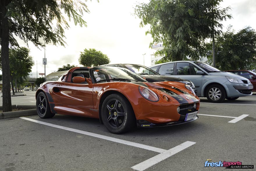 Como siempre en las quedadas hay infiltrados, aunque este tiene menos culpa, se trata de un Lotus Elise de primera generación, un coche de motor central con peso reducido. Y decimos que tiene menos culpa porque su corazón es japonés, pues proviene de Toyota.