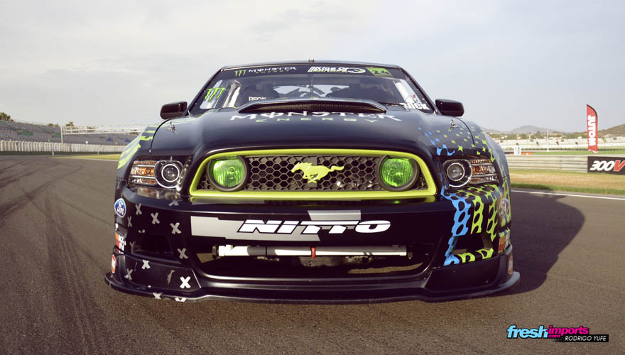 Uno se da cuenta que el esfuerzo continuo esta recompensado cuando llega el dia en que delante de tu cámara, tienes en exclusiva al Nitto Tire Ford Mustang RTR de Monster Energy que conduce el conocido piloto de Drift Vaughn Gittin Jr. Y no únicamente eso, sino que además, el escenario para la sesión es el circuito de Cheste (Ricardo Tormo) en Valencia.