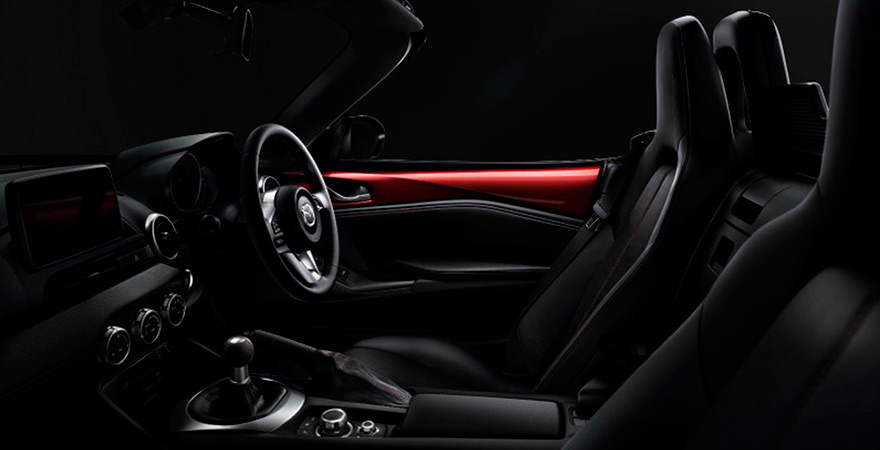 El interior sigue siendo algo simple como el de sus predecesores, aunque vemos Mazda integrará una nueva pantalla LCD en la parte superior de la consola de su pequeño cabrio.