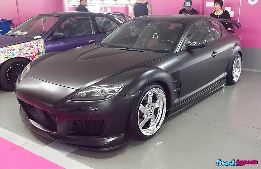 Su hermano mayor el RX-8 con bodykit Mazdaspeed y en color negro mate es espectacular.