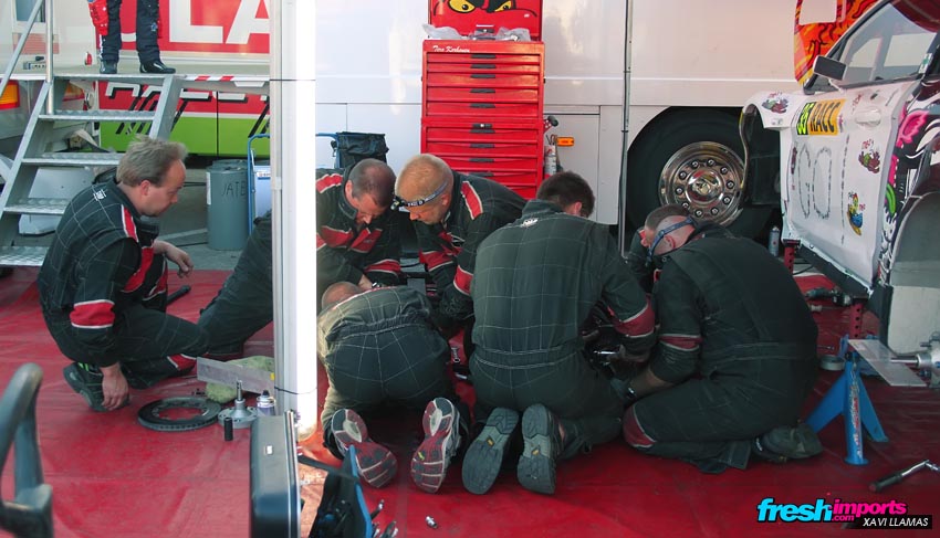 En la asistencia, preparaban cada coche al máximo para obtener el mejor rendimiento en los tramos del sábado.