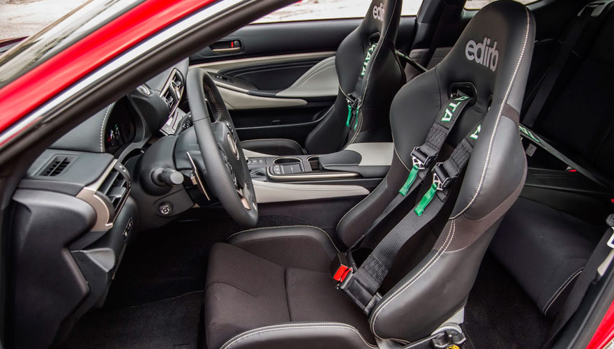 El Lexus RC-F Sport Rocket Bunny se apoya a ras de suelo sobre unas Toyo Proxes R888 (265/30 para la parte delantera y 325/30 para la parte trasera) montadas en unas bonitas Enkei de 21 pulgadas.