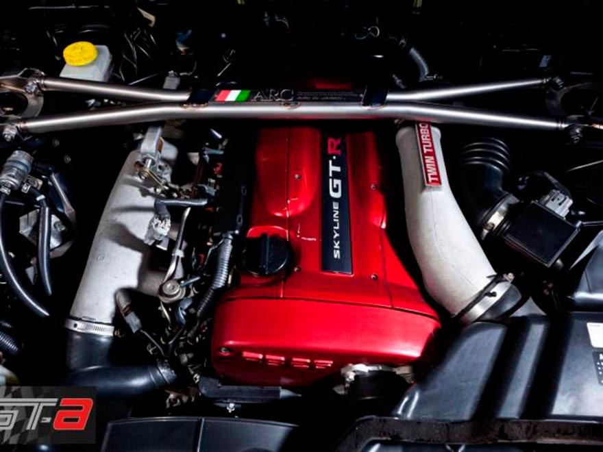 Este R34 está dando alrededor de unos 550 cv a partir de su propulsor de 6 cilindros en línea y 2.6 Litros biturbo, el conocido RB26DETT.Al parecer las modificaciones son cuantiosas, pero lo único que podemos ver es un intercooler turbonetics en el frontal del Skyline GT-R, que debe enfriar la admisión del turbo con gran facilidad gracias a su superficie. Se comenta que a través de su Caja de cambios Getrag de 6 velocidades podrían salir hasta 1000cv mediante un software de potencia.