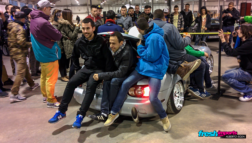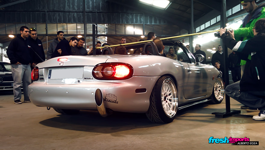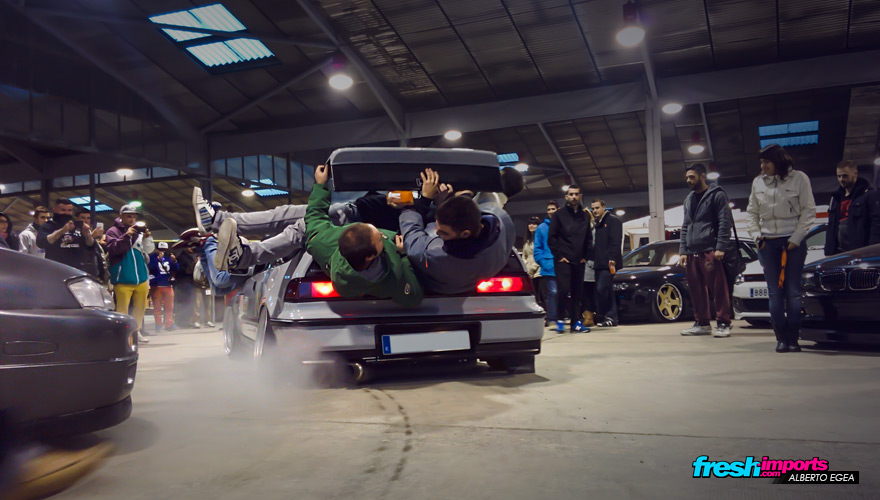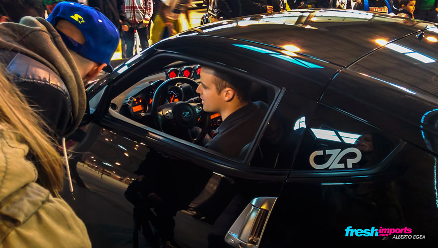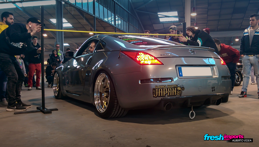 En ese mismo instante, Dani arrancó su Z para dejar paso a coches que estaban en la segunda linea para que pudiesen participar en la prueba del limbo que justo comenzaba. Solo hacen falta 2 apretones para que el sonido del escape de Dani haga que la gente se aparte rápidamente. Lo cierto es que suena atronador e intimida a cualquiera!