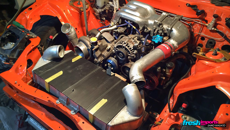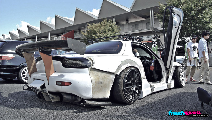 Masato continuó dándole su toque personalizado a su FD3S, empezó por rehacer a mano todo el kit de carrocería RE-Amemiya consiguiendo algo único. Ya sabéis, un delicado proceso de recorte, de aplicar fibra y de lijado. Agresividad en estado puro.