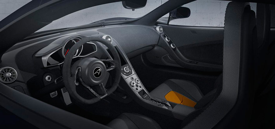 El habitáculo guarda mucha similitud con el del 650S, con tapicería de alcántara e inserciones en fibra de carbono, un componente muy de moda y que le da al coche ese toque racing que muchos buscamos.