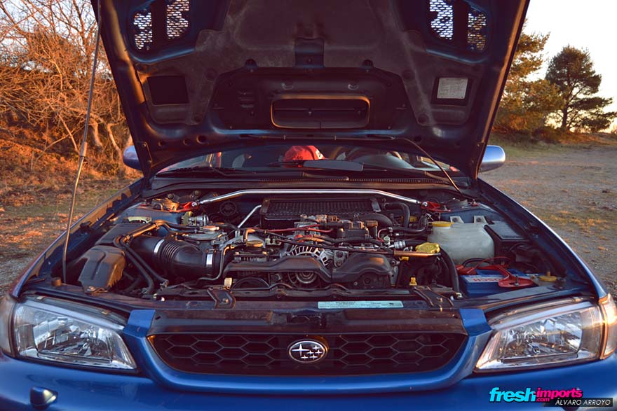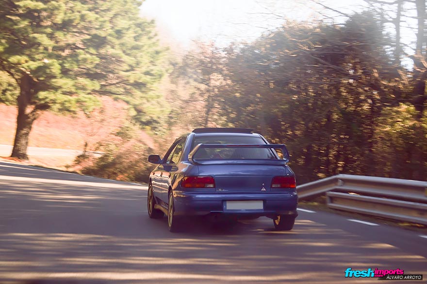 Su propietario, Germán, quien ya conocemos en Fresh Imports tras el reportaje que Xavi le hizo a su Toyota MR2 SW20, ha adquirido este Impreza GC8 hace aproximadamente un mes. El cambio es significativo, pues el Impreza tiene una aceleración bestial, pero lo compara con la agilidad y ligereza con la que se desenvolvía el MR2 en algunas situaciones, aunque éste no tenia el caracter de un WRC de los años 90