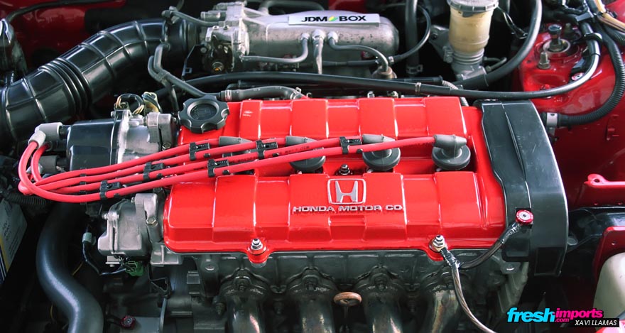 Como podéis ver el motor de este ED7 esta reluciente. Se le hizo un swap sustituyendo el motor de origen por el de un Honda Concerto de la misma cilindrada y potencia. Aprovechando se abrió el motor y se le hizo un rebuild por completo. Mientras el motor se encontraba fuera, se pintó el vano motor incluso el mismo bloque y la caja de cambios, dejando reluciente su estupendo d16a9, finalizándolo con los detalles de la tornillería completa del vano motor de la mano de pasword jdm y skunk2.