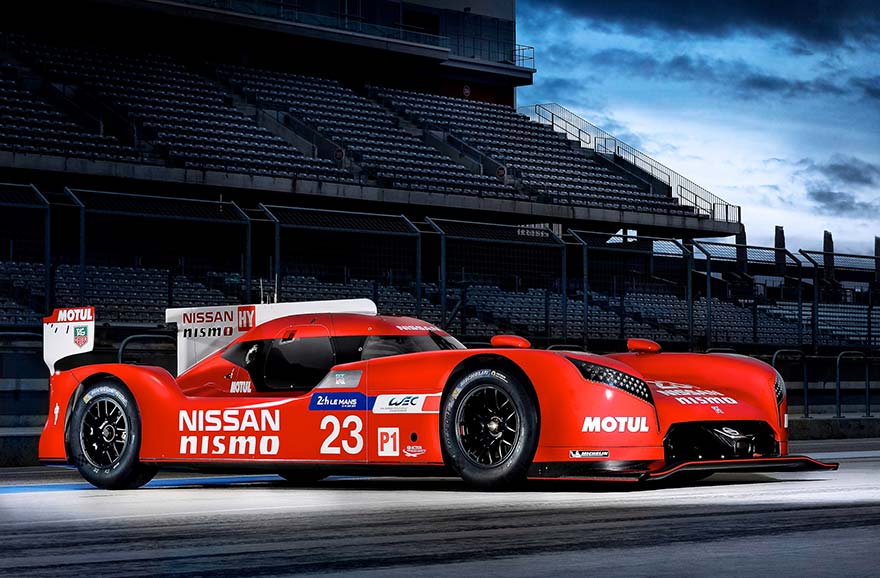 Con este titulo no os penséis que Nissan ha recurrido a instalar solo un motor de combustión en la parte delantera que desarrolle esta potencia. Aunque no de combustión si han decidido instalar tambien, motores en la parte trasera que proporcionan 700 cv de potencia en total. De esta manera se constituye un Nissan de 1250cv y FWD. Para más inri, las ruedas delanteras son notablemente más anchas que las traseras (14 delante y 9 detrás) ya que es esta la configuración que el propio chasis obliga a hacer. Esta es la declaración de intenciones a Audi, Porsche y Toyota para la temporada 2015 del campeonato mundial de resistencia, y lo han bautizado como Nissan GT-R LM Nismo LMP1.